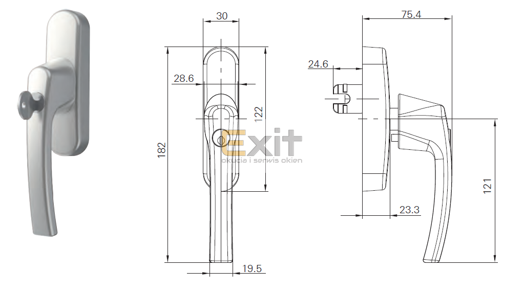 Klamka do okien aluminiowych ROTO z kluczykiem